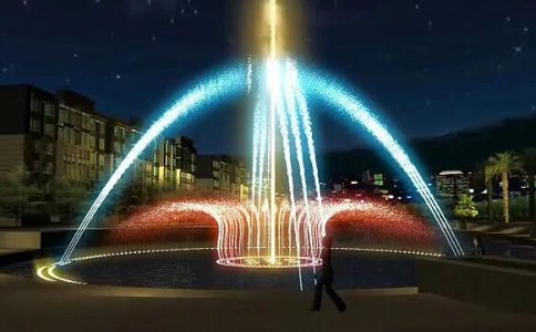 二是完全依靠噴泉設(shè)備人工造景。這類水景近年來在建筑領(lǐng)域廣泛應(yīng)用,發(fā)展速度很快,種類繁多,有音樂噴泉、程控噴泉、擺動(dòng)噴泉、跑動(dòng)噴泉、光亮噴泉、游樂噴泉、激光水幕電影等。