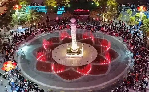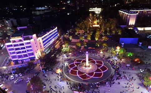 雙龍廣場地處石林縣城的中心,夜晚的雙龍廣場更顯壯麗,當(dāng)夜色彌漫廣場上的音樂噴泉塔瞬時(shí)亮起,黑夜中,各種樣式的變換,絢麗多彩的光影讓人目不暇接“月華連晝色,燈影雜星光。”人們在此駐足停留或聊天說笑,或拍照留念傾情邂逅一次屬于石林的浪漫
