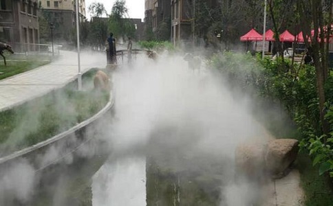 戶外空間環(huán)境降溫系統(tǒng),可以局部地控制大環(huán)境的溫度。人造霧降溫系統(tǒng)散發(fā)到空氣中的水微粒,在汽化的過程中要吸收大量周圍環(huán)境中的熱量,蒸發(fā)冷卻從而降低周圍環(huán)境溫度的原理